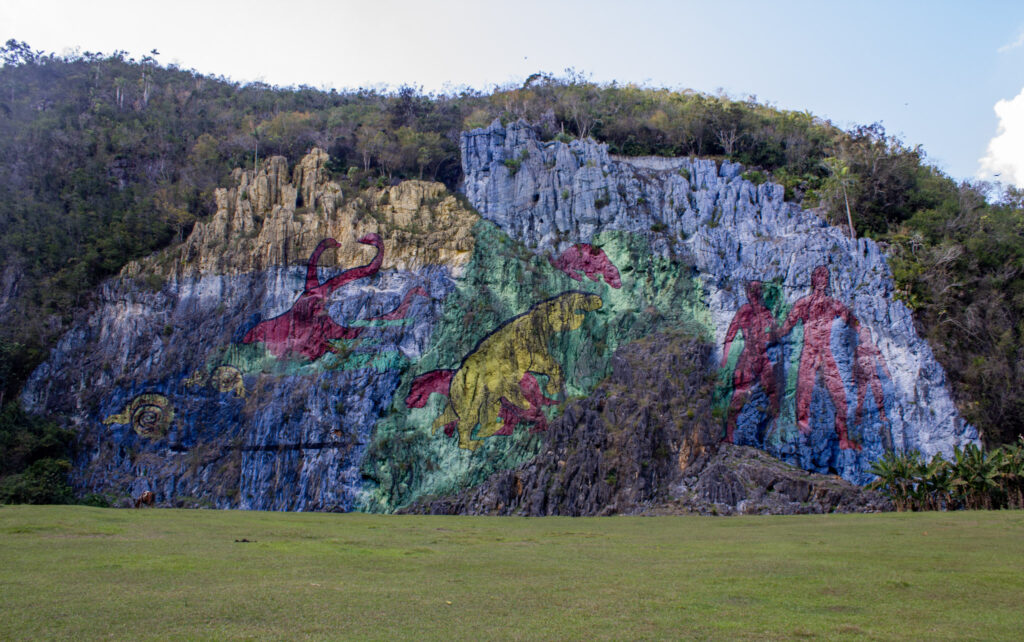 Die Mauer von Viñales (Mural de la Prehistoria) ist riesig, bunt und ein echter Hingucker. Die Wandmalerei wurde zwischen 1959 und 1962 vom Mexikaner Leovigildo González Morillo, einem Schüler des mexikanischen Künstlers Diego Rivera, angebracht und stellt die Evolutionsgeschichte dar.